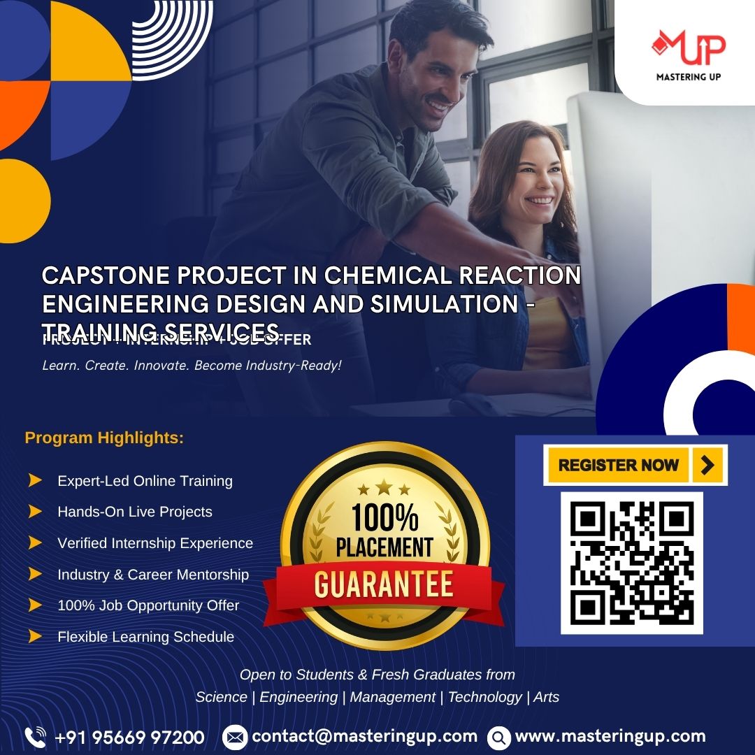 Capstone Project in Chemical Reaction Engineering Design and Simulation provides hands-on experience in designing and simulating complex chemical reactors. Participants will integrate knowledge of kinetics, thermodynamics, and transport phenomena to solve real-world industrial problems. The training involves using tools like Aspen Plus, MATLAB, or COMSOL for simulation and optimization. Emphasis is placed on safety, scalability, and sustainability. Ideal for advanced learners and professionals aiming to showcase expertise through a comprehensive final project.